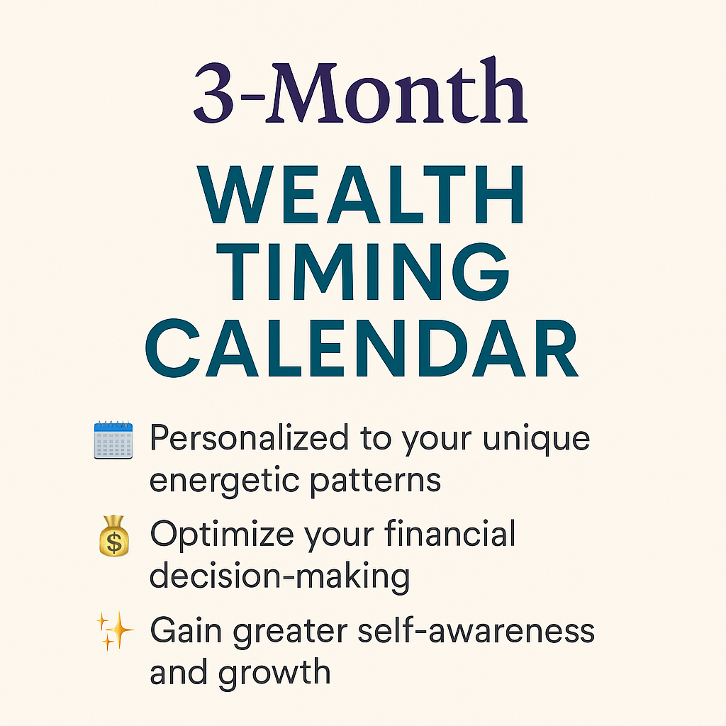 Your wealth cycle is uniquely yours, and the Wealth Timing Calendar helps you stay in sync with your true financial rhythm. Markets can boom, yet individual circumstances may vary—knowing when to act or refrain can make all the difference. With this calendar, you won’t just avoid pitfalls; you’ll be prepared to turn challenging periods into opportunities.
